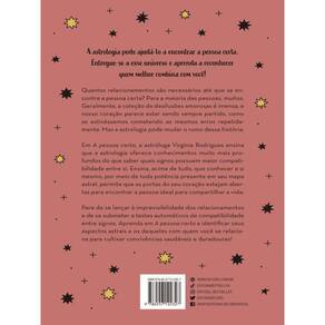 Se você está cansado de se envolver em relacionamentos confusos, frustrantes e sem perspectivas futuras, A pessoa certa, da astróloga Virgínia Rodrigues, chega para ensiná-lo a confiar na astrologia e aprender a reconhecer a sua “pessoa certa”! Muitas vezes é complicado falar sobre relacionamentos, considerando que as experiências de desilusões amorosas, corações partidos e amores finitos alcançam a casa dos milhares. É como se para cada pessoa certa houvesse outras tantas erradas, e encontrar o amor fosse o mesmo que achar uma agulha em um palheiro: uma missão quase impossível. Em A pessoa certa, a astróloga Virgínia Rodrigues demonstra que mudar essa realidade depende apenas de nós mesmos, se decidirmos, enfim, acreditar na astrologia e nos entregar a ela. Toda e qualquer pessoa é regida pela configuração do céu no momento de seu nascimento e carrega consigo uma identidade astral — características que definem a sua personalidade, os seus comportamentos e a sua forma de viver. Cada área da vida recebe certa influência astrológica, que pode ser identificada segundo o mapa astral, ferramenta que revela qual astro e signo do zodíaco regem determinado setor da vida. Além de se conectar com a Vênus — o planeta que rege o amor — de cada um, Virgínia também enfatiza que é necessário conhecer os outros elementos do mapa, qual setor da vida é regido por qual astro e qual signo; é dessa forma que torna-se possível compreender um indivíduo em sua completude, inclusive a si mesmo, e então identificar os desejos e as necessidades que cada um possui em um relacionamento, tornado-o funcional e assertivo. Em A pessoa certa, entenda como a astrologia pode abrir as portas do seu coração, mesmo quando parecem emperradas, e aprenda a identificar todas as características que você considera essencial em alguém quando estiver à procura de um relacionamento, encontrando, finalmente, a sua pessoa certa!