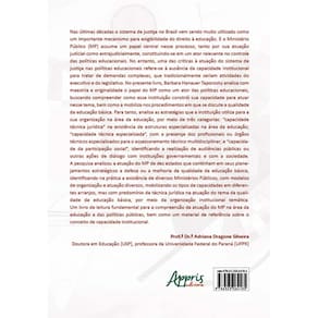 Nas últimas décadas o sistema de justiça no Brasil vem sendo muito utilizado como um importante mecanismo para exigibilidade do direito à educação. E o Ministério Público (MP) assume um papel central nesse processo, tanto por sua atuação judicial como extrajudicialmente, constituindo-se em um ator relevante no controle das políticas educacionais. No entanto, uma das críticas à atuação do sistema de justiça nas políticas educacionais refere-se à ausência da capacidade institucional para tratar de demandas complexas, que tradicionalmente seriam atividades do executivo e do legislativo. No presente livro, Barbara Hanauer Taporosky analisa com maestria e originalidade o papel do MP como um ator das políticas educacionais, buscando compreender como essa instituição constrói sua capacidade para atuar nesse tema, bem como a mobiliza nos procedimentos em que se discute a qualidade da educação básica. Para tanto, analisa as estratégias que a instituição utiliza para a sua organização na área da educação, por meio de três categorias: “capacidade técnica jurídica” na existência de estruturas especializadas na área da educação; “capacidade técnica especializada”, com a presença dos pro?ssionais ou órgãos técnicos especializados para o assessoramento técnico multidisciplinar; e “capacidade da participação social”, identi?cando a realização de audiências públicas ou outras ações de diálogo com instituições governamentais e com a sociedade. A pesquisa analisou a atuação do MP de dez estados que continham em seus planejamentos estratégicos a defesa ou a melhoria da qualidade da educação básica, identi?cando na prática a existência de diversos Ministérios Públicos, com modelos de organização e atuação diversos, mobilizando os tipos de capacidades em diferentes arranjos, mas com predomínio da técnica jurídica na atuação do tema da qualidade da educação básica, por meio da organização institucional temática. Um livro de leitura fundamental para a compreensão da atuação do MP na área da educação e das políticas públicas, bem como um material de referência sobre o conceito de capacidade institucional. Prof.ª Dr.ª Adriana Dragone Silveira Doutora em Educação (USP), professora da Universidade Federal do Paraná (UFPR).