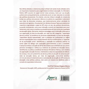 Nas últimas décadas o sistema de justiça no Brasil vem sendo muito utilizado como um importante mecanismo para exigibilidade do direito à educação. E o Ministério Público (MP) assume um papel central nesse processo, tanto por sua atuação judicial como extrajudicialmente, constituindo-se em um ator relevante no controle das políticas educacionais. No entanto, uma das críticas à atuação do sistema de justiça nas políticas educacionais refere-se à ausência da capacidade institucional para tratar de demandas complexas, que tradicionalmente seriam atividades do executivo e do legislativo. No presente livro, Barbara Hanauer Taporosky analisa com maestria e originalidade o papel do MP como um ator das políticas educacionais, buscando compreender como essa instituição constrói sua capacidade para atuar nesse tema, bem como a mobiliza nos procedimentos em que se discute a qualidade da educação básica. Para tanto, analisa as estratégias que a instituição utiliza para a sua organização na área da educação, por meio de três categorias: “capacidade técnica jurídica” na existência de estruturas especializadas na área da educação; “capacidade técnica especializada”, com a presença dos pro?ssionais ou órgãos técnicos especializados para o assessoramento técnico multidisciplinar; e “capacidade da participação social”, identi?cando a realização de audiências públicas ou outras ações de diálogo com instituições governamentais e com a sociedade. A pesquisa analisou a atuação do MP de dez estados que continham em seus planejamentos estratégicos a defesa ou a melhoria da qualidade da educação básica, identi?cando na prática a existência de diversos Ministérios Públicos, com modelos de organização e atuação diversos, mobilizando os tipos de capacidades em diferentes arranjos, mas com predomínio da técnica jurídica na atuação do tema da qualidade da educação básica, por meio da organização institucional temática. Um livro de leitura fundamental para a compreensão da atuação do MP na área da educação e das políticas públicas, bem como um material de referência sobre o conceito de capacidade institucional. Prof.ª Dr.ª Adriana Dragone Silveira Doutora em Educação (USP), professora da Universidade Federal do Paraná (UFPR).