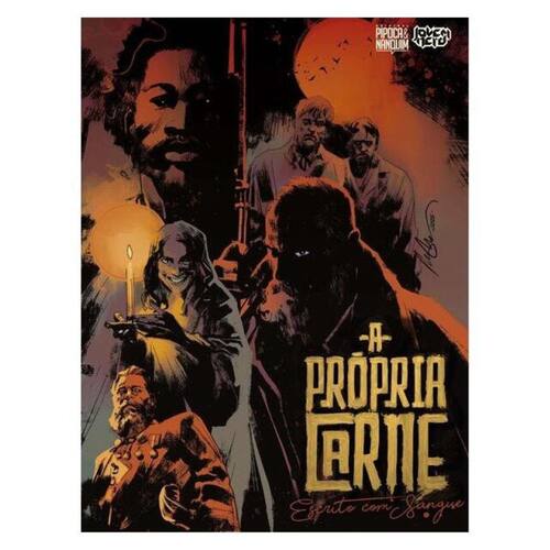 Com um time de elite de quadrinistas brasileiros, esta coletânea amplia a história por trás do primeiro longa-metragem produzido pelo Jovem Nerd, em seis narrativas de personagens atormentados por um inexplicável mal ancestral! Diante da brutalidade da Guerra do Paraguai, um trio de soldados decide desertar e se depara com uma cabana isolada na mata, habitada por um fazendeiro e uma garota, que concordam em hospedá-los por uma noite. De início, os três pensam ter dado sorte, mas logo descobrem que existe alguma coisa oculta por trás daquelas paredes, algo sombrio e faminto, que não pretende deixar ninguém escapar ileso. Assim se dá a premissa de A Própria Carne , um filme de terror totalmente nacional dirigido por Ian SBF (um dos criadores do Porta dos Fundos e de Sociedade da Virtude), Alexandre Ottoni (o Jovem Nerd) e Deive Pazos (Azaghal). Mas como será que todas essas pessoas chegaram ali? Quais caminhos tortuosos as trouxeram até aquela fatídica noite? Foi para responder essas questões que a editora Pipoca & Nanquim, em parceria com o Jovem Nerd, Neebla e Nonsense Creations, juntou um time dos sonhos de escritores e desenhistas em seis HQs curtas que imaginam o passado de cada um dos principais personagens do filme. Nos roteiros, Ian SBF se junta à especialista em horror Marcela Godoy ( A Dama do Martinelli, Papa-Capim: Noite Branca ) e ao romancista Leonel Caldela ( Trilogia da Tormenta ). Já nas artes, integram a equipe Alexandre Tso ( Contos da Calango ), Mayara Lista ( Naruna ), Lucas Pereira ( Tengu ), Akila Hurlant ( Metal Hero ), Raphael Salimena ( 100 Discos para Conhecer Aguardela ) e Alexandre Carvalho ( Romaria ), Guilherme Petreca ( Ogiva, Kabuki ) também contribui como colorista. Uma sociedade esotérica que organiza rituais macabros. Uma entidade de matriz africana que incorpora em escravizados fugitivos. Uma estranha viagem cósmica induzida pela morfina. A Própria Carne – Escrito com Sangue traz tudo isso e muito mais em uma edição altamente caprichosa, com capa desenhada pelo multipremiado Rafael Albuquerque (Vampiro Americano), verniz localizado e 116 páginas coloridas no papel couché de alta gramatura. Uma sequência de narrativas de petrificar o sangue, que funcionam tanto como complemento para o filme quanto como um material à parte.