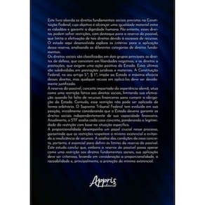 Este livro aborda os direitos fundamentais sociais previstos na Constituição Federal, cujo objetivo é alcançar uma igualdade material entre os cidadãos e garantir a dignidade humana. No entanto, esses direitos podem sofrer restrições, com destaque para a reserva do possível, que limita a efetivação de tais direitos devido à escassez de recursos. O estudo aqui desenvolvido explora os critérios para a aplicação dessa reserva, analisando as diferentes categorias de direitos fundamentais.