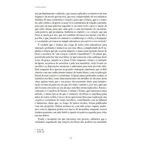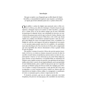 A Missa é o ato público e solene mais vivido pelos fiéis cristãos, centro do culto católico e fonte inesgotável de graças para a vida espiritual. Nela, o cristão não assiste a um simples rito; é antes colocado, aqui e agora, diante do coração vivo da fé: o Sacrifício em que Deus se oferece a Deus, por meio do sacerdote, e em que a Terra toca o Céu. Serve aprofundar e intensificar a nossa fé católica, para contemplar a Missa como a \"escada misteriosa\" de Jacó: um único movimento sagrado em que sobem as nossas súplicas e descem as graças, enquanto o altar se torna imagem antecipada da Jerusalém celeste. Atribuído a um autor anônimo do século XIX e nascido do impulso catequético pós-tridentino, A Santa Missa distingue-se pela rara combinação de precisão histórica, clareza expositiva e intenção pastoral. De modo singelo, explica a origem dos ritos, expõe seus elementos dogmáticos, ilumina o simbolismo dos gestos do sacerdote e forma, no fiel, uma participação interior mais consciente e fervorosa. O método da obra é tão simples quanto exigente: conservar o texto da liturgia, desenvolver seu sentido literal e explicar, palavra por palavra e rito por rito, tudo o que compõe o Ordinário da Missa, tornando palpável a ligação entre o que se reza e se faz no altar, o que aconteceu no Cenáculo e no Calvário, e o que se cumpre no sublime altar do Céu. Para tanto, o livro oferece, primeiro, instruções sobre a natureza, o valor e os frutos do Sacrifício, bem como as disposições necessárias para oferecê-lo e assisti-lo com proveito; depois, acompanha passo a passo as orações e cerimônias, do sinal da cruz ao último Evangelho.