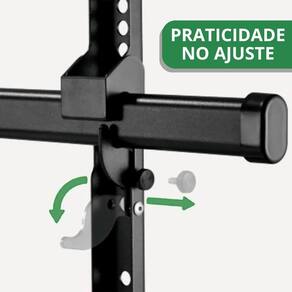 Atributos e benefícios: - Funções: Avanço / Recuo da tela; - Giro horizontal: Até 60º (Esquerda / Direita - Limitado ao tamanho da tela da TV); - Ajuste de inclinação: Até 5º para cima e 15º para baixo; - Inclinação lateral (Correção de Nível): +/- 3º. - Movimentos leves e precisos para melhor posicionamento da TV; - Acompanha exclusivo nível bolha magnético; - Parafuso extralongo M8x50 para TVs Samsung - Organizador de cabos; - Trava de segurança.