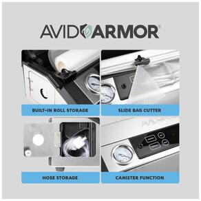 ZENAMENTO DE ROLOS E CORTADOR DE SACO A A420 Suction Vacuum Sealer vem com um Vacuum Sealer Roll inicial para caber no compartimento de zenamento de rolo embutido com o slicer de saco anexado para fazer sacos personalizados. O zenamento de rolos cabe apenas rolos de comprimento. Feito para uso com sacos e rolos de vedação a vácuo em relevo ou canalizados. PAINEL DE CONTROLE DE DISPLAY DIGITAL Fácil de usar e ler, painel de exibição digital premium com indicador de progresso e várias configurações ou modos. VEDAÇÃO TÉRMICA DE DUPLA FORÇA O fio de vedação dupla cria duas vedações herméticas positivas em cada saco. Perfeito para zenar alimentos frescos no freezer, eliminando a queima e desidratação do congelador. Use para preparar refeições e cozinhar sous vide. FUNÇÕES PULSE, CANISTER E MARINATE O A420 é carregado com recursos para selar a vácuo itens delicados, selar recipientes a vácuo externos ou marinar rapidamente seus alimentos. Reduza a deterioração e o desperdício de alimentos Marca: Não Informado
