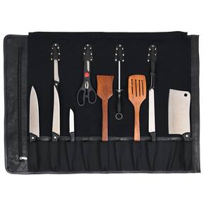 Pode ser como estojo de zenamento de facas zenando 10 facas de cozinha e outros acessórios. Também pode ser como suporte de utensílios. Pode conter facas de até 18 de comprimento