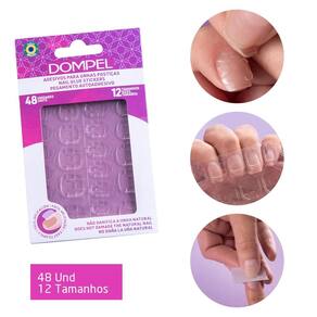 Os Adesivos para unhas Postiças Dompel são perfeitos para usar em casa e para as pessoas que não querem ou não podem utilizar cola. Com 48 unidades de diferentes tamanhos colam em ambos os lados (dupla face), são práticos de destacar, aplicar e fixam as unhas postiças por até 7 dias. Não danificam a unha natural.