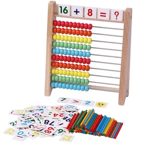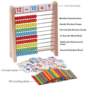 Nosso brinquedo de contagem de ábaco de 100 contas de madeira vem com 100 palitos de madeira e 110 cartões matemáticos. É um manipulador matemático prático e precoce que ensina contagem, adição e subtração. - BRINQUEDO CLÁSSICO DE APRENDIZAGEM DE ÁBACO: As coisas boas e antigas nunca mudam. O ábaco tem sido uma ferramenta matemática vital por séculos. É um simples manipulador visual de matemática que ensina as crianças a construir e desconstruir números. Um ábaco é uma ótima maneira de envolver totalmente a mente das crianças no aprendizado de habilidades matemáticas. - PROJETADO E ATUALIZADO: este ábaco resistente vem com 100 palitos de madeira e 110 cartões de matemática. O design do compartimento para cartas na parte superior permite que você exiba a equação abaixo do visual de adição ou subtração de contas; você pode usar palitos de contagem coloridos para ensinar as crianças a resolver problemas matemáticos simples. - CONSTRUÇÃO DE QUALIDADE: Este ábaco infantil é feito de uma estrutura de madeira resistente que contém 10 fios grossos com 10 contas de madeira coloridas em cada uma — 100 contas no total. As contas deslizam facilmente para frente e para trás nas hastes de metal. - SEGURO PARA CRIANÇAS: O conjunto de brinquedos matemáticos de ábaco arco-íris para crianças é feito de material de alta qualidade, sem BPA e tingido com tinta brilhante e não tóxica à base de água. - CONTADORES MATEMÁTICOS PARA CRIANÇAS: Nosso auxiliar educacional de matemática de ábaco permite que as crianças movam as contas de forma visual e tangível enquanto contam, somam, subtraem, multiplicam, dividem e muito mais. Perfeito para jovens alunos, crianças Montessori, pré-escola, creches, salas de aula, ensino doméstico, 1ª série, 2ª série, jardim de infância.