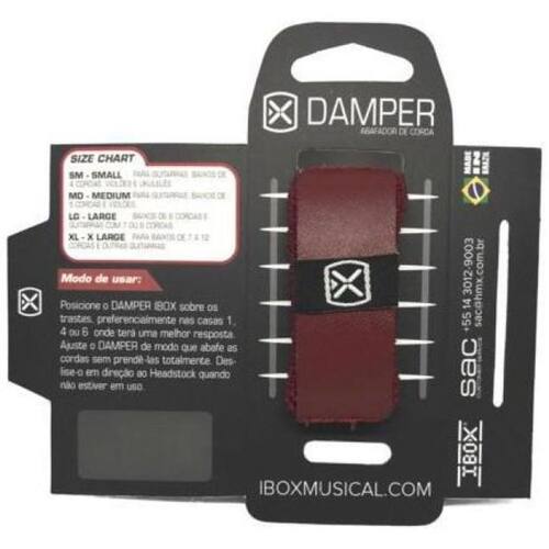 Abafador De Cordas Couro Ibox Damper Bordo - MD Medium Abafador de cordas profissional, para instrumentos musicais, perfeito para performances e gravações em estúdio. Material: Couro Tamanho: MD - Medium, para guitarras e baixos de 5 cordas e violões. Conteúdo da embalagem - Abafador De Cordas Couro Ibox Damper Bordo MD contra defeitos de fabricação Marca: Não Informado Ean: 7898962863503