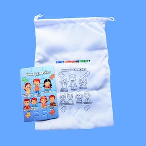 E a experiência não para por aí: junto com o abafador, você recebe um quebra-cabeça cognitivo exclusivo, que estimula o raciocínio, a concentração e a criatividade. Esse quebra-cabeça vem dentro de um saquinho personalizado, estampado com a mesma arte, criando uma identidade única e especial. Para completar, a arte é estampada em versão preto e branco, pronta para ser colorida, transformando o momento em uma atividade lúdica e divertida que une proteção, aprendizado e imaginação.