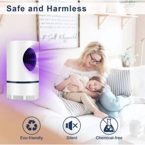 Características: Luz suave e trabalha silenciosamente sem nenhum ruído O consumo de energia é muito baixo Luz led com 360-400nm luz roxa pode atrair mosquitos ou outros insetos facilmente. O fluxo de ar poderoso do ventilador trás os mosquitos com segurança para dentro da gaiola matando todos por secagem e desidratação. O cabo com interface usb pode ser ligado facilmente por tablet, Power Bank ou carregador de celular.