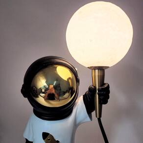 Abajur Astronauta Foguete Luminária De Mesa Decorativo 45cm Luminária Astronauta Pisando na Lua Inigual Decor A Luminária Astronauta Pisando na Lua é uma peça criativa e inspiradora que transforma a iluminação em arte. Representando um astronauta em pé sobre a superfície lunar, ele segura uma luminosa que remete a uma pequena lua ou estrela - como se estivesse trazendo luz diretamente do universo para o seu espaço. A luminosa é feita para ser retirada e encaixada facilmente na mão do astronauta, criando uma interação única e encantadora. Feita em resina de alta qualidade, essa luminária não só ilumina o ambiente, mas também adiciona um toque de imaginação e sofisticação à decoração. Principais Benefícios: Design Lúdico e Impactante: A figura do astronauta sobre a lua, segurando a luminosa, traz charme e criatividade para qualquer ambiente. Luminosa Removível: A parte luminosa pode ser retirada e encaixada novamente na mão do astronauta, permitindo uma interação divertida e única com a peça. Perfeita para Ambientes Criativos: Ideal para quartos, escritórios, espaços temáticos ou para quem é apaixonado pelo universo e pelo design diferenciado. Decoração com Funcionalidade: Além de iluminar, é uma escultura decorativa que se destaca na composição do ambiente. Especificações do Produto: Altura: 45 cm aproximadamente Largura: 18 cm aproximadamente Profundidade: 15 cm aproximadamente Peso: 1.270 g aproximadamente Material: Resina Alimentação: Tomada 127V Conteúdo da Embalagem: 1 Luminária Astronauta Pisando na Lua Cuidados e Embalagem: O produto é cuidadosamente embalado para garantir que chegue até você em perfeitas condições. Para mantê-lo sempre bonito, limpe com pano seco ou levemente umedecido. Evite o uso de produtos abrasivos ou exposição direta ao calor excessivo. Ilumine com Criatividade e Fantasia: A Luminária Astronauta Pisando na Lua é perfeita para quem deseja trazer um toque de magia do espaço para a decoração. Uma peça que vai além da iluminação - ela conta uma história e inspira sonhos. ATENÇÃO: As demais decorações e elementos nas imagens são meramente ilustrativos e não estão inclusos no anúncio. Ean: 7900020028233