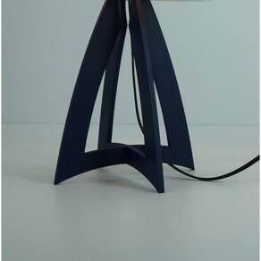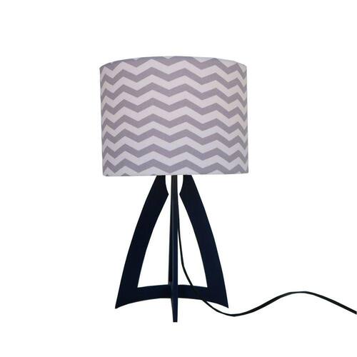 Abajur com base em madeira pintada na cor azul marinho. Cúpula em tecido chevron cinza e branco, medindo 20 cm de diâmetro e 15 cm de altura.Altura total: 35 cm Largura: 20 cm Bivolt Usar lâmpadas fluorescentes ou de LED