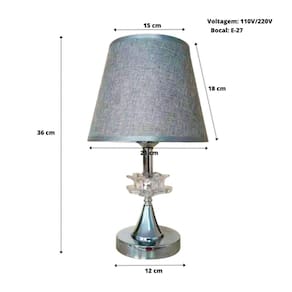 ABAJUR COM BASE CROMADA EM PLÁSTICO E CÚPULA EM LINHO 15X36CM BIVOLT - AL55013