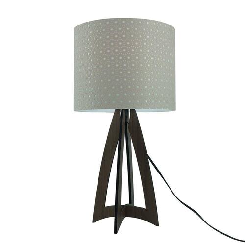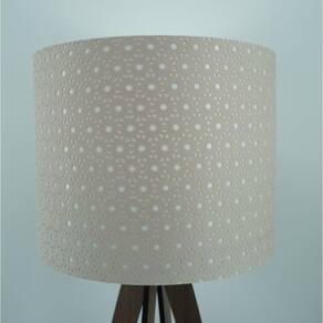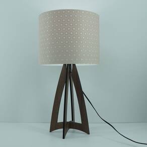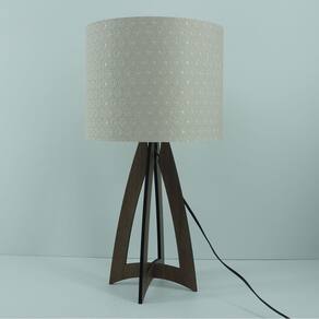 Abajur com base em madeira recortada a laser na cor marrom. Cúpula revestida com tecido rendado na cor bege. Cúpula medindo 25 cm de diâmetro x 20 cm de altura.