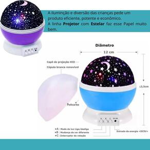 1 como funciona a projeção 360º R: a luminária projeta um céu estrelado em todas as direções, criando uma atmosfera mágica e envolvente no ambiente.