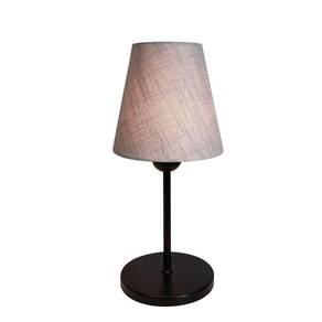 Abajur e Luminária de Cabeceira para Quarto e Sala Md-2005 Base Aluminio Preto Cupula em Tecido Cone Cinza