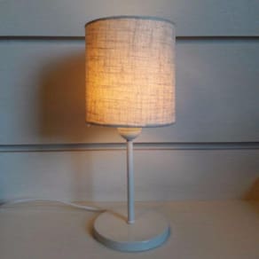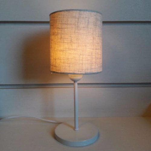 Abajur e Luminária de Cabeceira para Quarto e Sala Md-2010 Base Branca Cupula Tecido Cilindrica 14x15cm Rustico Bege