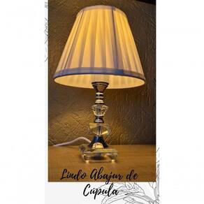 Abajur Pequeno de Cristal com Cúpula de Voil na cor Branca