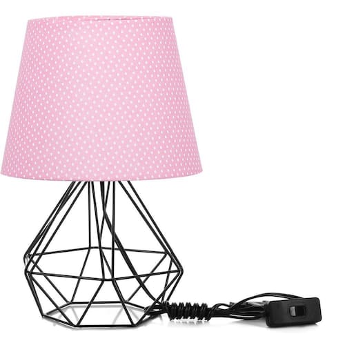 Abajur Diamante Dome Rosa/bolinha Com Aramado Preto