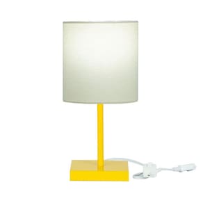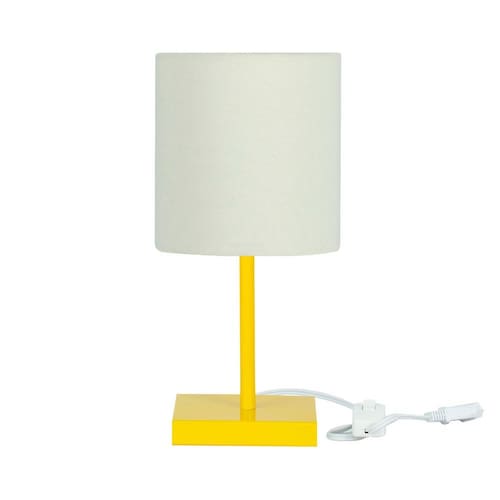 Abajur Eros Cilindrico Bege Base Toda Amarela Quadrada