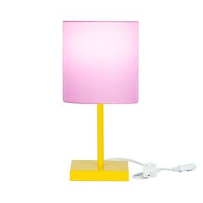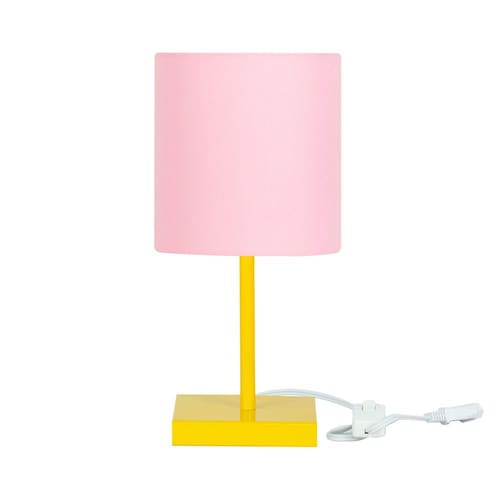 Abajur Eros Cilindrico Rosa Base Toda Amarela Quadrada