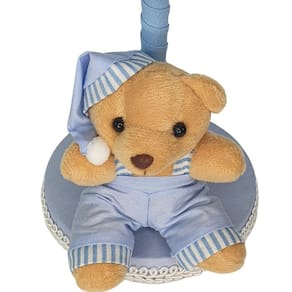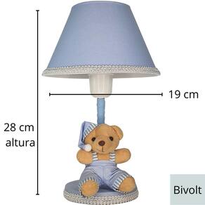 Abajur Infantil Bebê Quarto Criança Azul Soneca Urso Bege