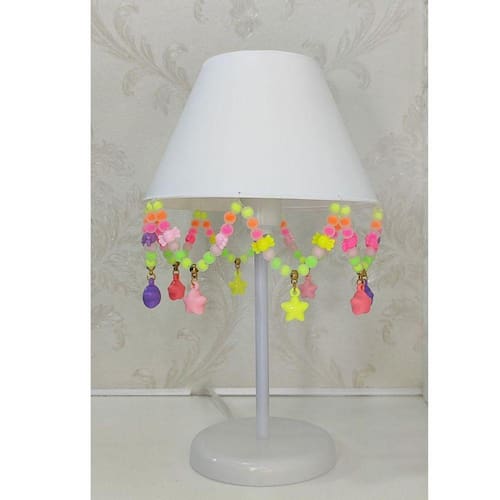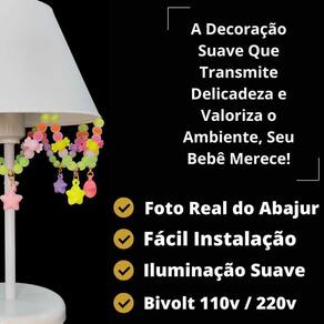 Abajur Infantil Estrelas Decoração Bolinhas Neon Branco