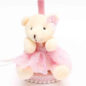 Lindo abajur em tecido com um ursinho na base para o quarto do bebê, ideal para deixar o ambiente com funcionalidade e muito mais charme e beleza.