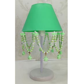 - cúpula de polipropileno plástico resistente na cor verde; - base em acrílico branco; - haste de acrílico branco; - pingentes de estrela, pérolas, caracol, balinhas verde, emojis; - altura total do abajur 30 cm; - diâmetro maior da cúpula mede 17 cm; - soquete para lâmpadas modelo e-27 bivolt aceita lâmpadas 110v e 220v ; - usar lâmpada de no máximo 40w lâmpada não incluso ; - importante: imagens reais do produto, porém as cores dos pingentes e pérolas podem variar de acordo com cada produto fabricado, conforme disponibilidade Do estoque