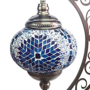 Lindo Abajur de mesa decorativo Turco, com suporte de metal bronzeado e cúpula circular artesanal em mosaico de vidros.