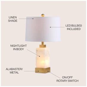 Como o alabastro é um material natural, pode apresentar variações únicas em cada peça. Os abajures de mesa JONATHAN Y são projetados com uma construção de alta qualidade, oferecendo uma iluminação elegante para qualquer ambiente. Incluem lâmpadas LED de economia de energia e são compatíveis com tomadas inteligentes Alexa (vendidas separadamente). O abajur de tambor é feito com capa dura em 100% algodão.