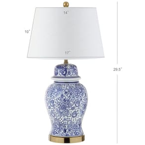 Base da Lâmpada: E26 Dimensões do Produto: 43,18 cm x 43,18 cm x 74,93 cm Peso do Item: 5,49 quilos Estilo: Tradicional Cor: Azul e Branco Potência: 100 watts Brilho: 800 lúmens Código UPC: 819727021577 Número do Modelo: JYL3008A Marca: Não Informado