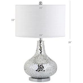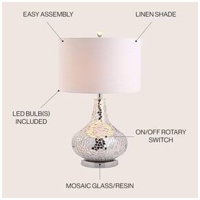 Cada design JONATHAN Y é criado com uma atenção rigorosa aos detalhes, utilizando apenas componentes da mais alta qualidade. A base em formato de lágrima, com incrustação de espelho em mosaico, e o abajur de tambor em algodão 100% branco são os destaques desta luminária exclusiva, garantindo satisfação e estilo para sua decoração.