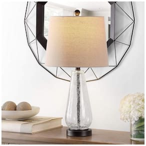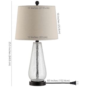 Abajur Luminária de Mesa em Vidro com 66 cm de Altura para Quarto, Sala de Estar, Escritório e Mesa de Cabeceira, 100W, Safavieh, Branco