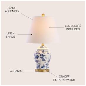 Base da Lâmpada: E26 Dimensões do Produto: 33,02 cm x 33,02 cm x 55,88 cm Peso do Item: 2,18 quilos Estilo: Clássico, Cottage, Tradicional, Transicional Cor: Azul e Branco Potência: 60 watts Brilho: 800 lúmens Código UPC: 819727021546 Número do Modelo: JYL3005A Marca: Não Informado