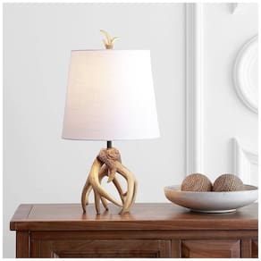Esta luminária de mesa é inspirada na forma de chifres encontrados nas montanhas, mas é feita de resina para garantir maior durabilidade e minimizar imperfeições naturais. Com uma aparência que simula os tons naturais de chifre de veado e acabamento correspondente, ela tem 48 cm de altura, tornando-a uma opção versátil para iluminar qualquer superfície da sua casa com um brilho acolhedor.
