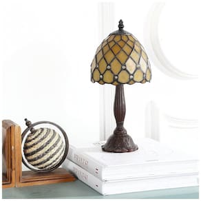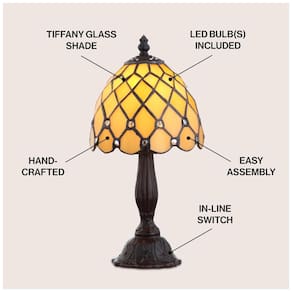 Adicione um toque de elegância clássica às mesas da sua sala de estar com este encantador abajur em vidro inspirado na Tiffany. Com tons quentes de marfim em cada peça de vidro, ele emite uma luz ambiente suave e acolhedora, enriquecida por joias transparentes que projetam um lindo padrão nas paredes ao redor. Embora inspirado no design tradicional, este abajur é modernizado com um interruptor liga/desliga na parte superior e um cabo envolto em seda, além de ser compatível com lâmpadas LED.