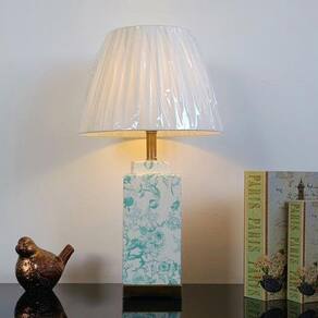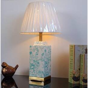 Este abajur possui tamanho harmônico compatível com ambiente, design moderno, base em formato quadrado na porcelana na cor branca, com estampa de floral em verde, pés em metal na cor dourado escuro e com excelente aderência a superfície.