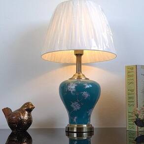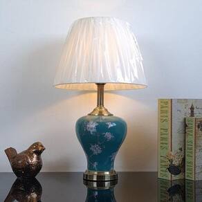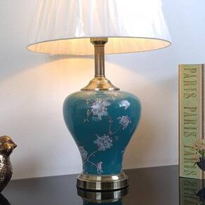 Este abajur possui tamanho harmônico compatível com ambiente, design moderno, da linha importada Flowers, base de porcelana na cor Verde e estampa floral com pássaros, pés resistente em metal na cor dourado escuro e com excelente aderência a superfície.