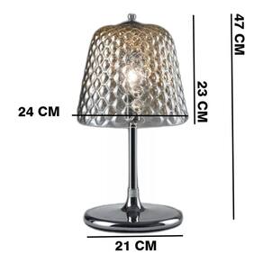 Abajur Luminária Vidro Metal Fumê 47cm - Prateado