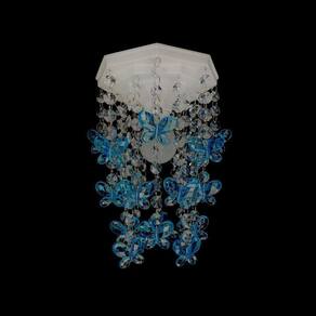 Base plafon octogonal de 17cm em acrílico na cor branca. Castanhas de acrílico transparente. Borboletas de acrílico na cor azul. Altura do lustre 25 cm. Voltagem: bivolt 127v 220v