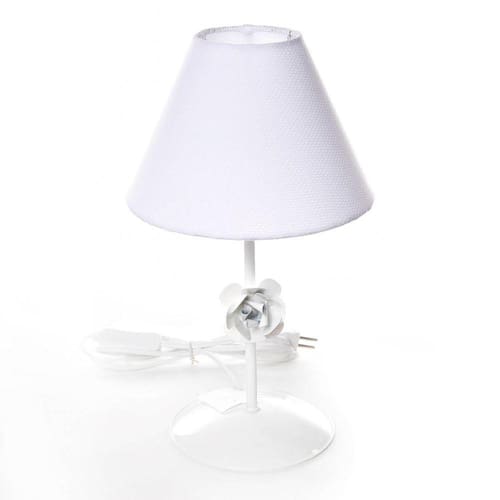 Garanta um ambiente único e aconchegante com este charmoso abajur em alumínio que dará o toque final ao quarto dos pequenos. É a opção ideal para iluminar com toques de ternura e charme. Dados TécnicosAbajur em alumínio com pintura epóxi, flor de metal pequena e cúpula forrada com tecido. Lâmpadas SuportadasEconômicas / Led: Qualquer LâmpadaIncandescente amarela : Até 40w por Soquete MedidasLargura: 25 cmAltura: 35 cm