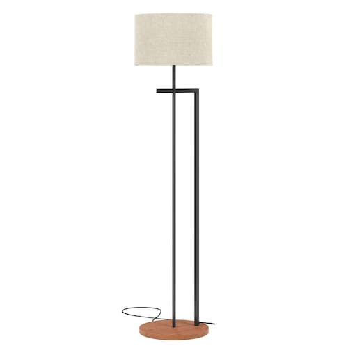 Abajur moderno estilo industrial base mdf estrutura de ferro preto cupula bege - LUMSOLANEPRETOPALHA3