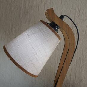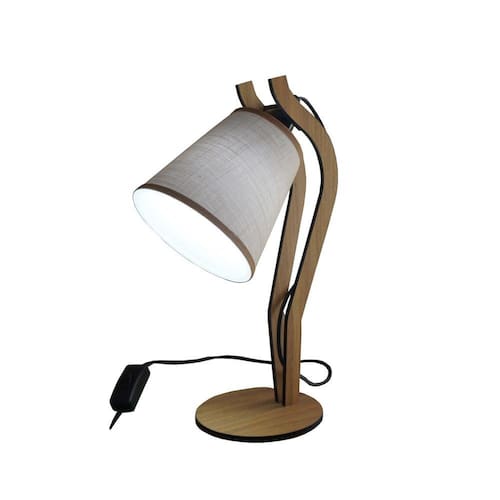 Abajur pequeno modelo pixel produzido em madeira recortada a laser na cor marrom. Cúpula revestida com tecido linho na cor bege. Cúpula medindo 13 cm de diâmetro x 13 cm de altura. Dimensão total do produto: Altura: 34 cm Largura: 20 cm Bivolt. Usar lâmpadas fluorescentes ou LED até 25 w. Fio com plug liga/desliga na cor preta.