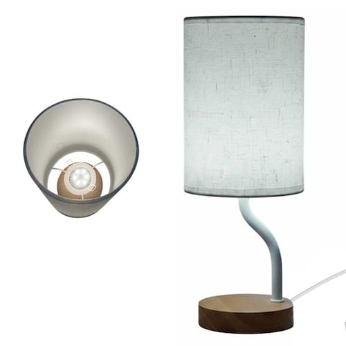Com uma base robusta em madeira e uma cúpula de tecido que filtra a luz de forma suave, esta luminária se adapta