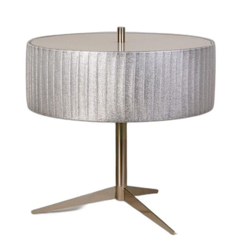 Abajur silk em metal escovado com cúpula plissada prata, com fechamento em acrílico fosco. Utiliza 3 x led-e27. Não acompanha lâmpada. Produto montado. Medidas: l 40 - p 40 - a 40 cm. Bivolt. Produto delicado, limpeza somente com flanela seca. Garantia de 1 ano. O prazo de garantia do fabricante não abrange quebras, trincas em vidros ou acrílicos. Orientamos utilizar mão de obra profissional.