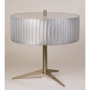Abajur luminária de mesa silk com cúpula de tecido prata plissado. Com design clean e moderno sua base é um charme a parte, faz com que seja indicado para compor ambientes internos. Ideal para dormitório, sala de estar, sala de jantar, home office, hall de entrada. Seus materiais são em metal escovado, tecido e acrílico fosco fechamento superior da cúpula . Comporta 3 lâmpadas de soquete e27 de led não inclusas . Abajur silk em metal escovado com cúpula plissada prata, com fechamento em acrílico fosco. Utiliza 3 x led-e27. Não acompanha lâmpada. Produto montado. Medidas: l 40 - p 40 - a 40 cm. Bivolt.