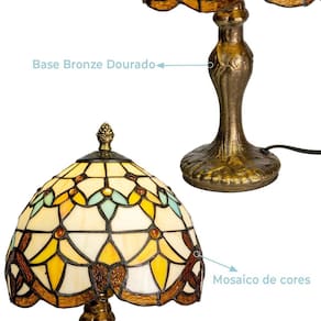 Abajur Tiffany Cúpula Vitral Mosaico De Cores Mesa 38x30cm