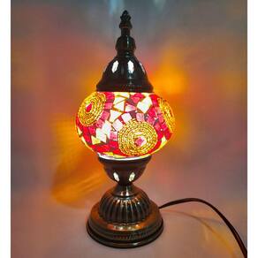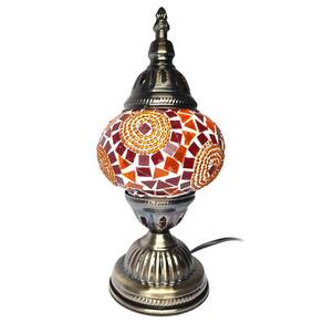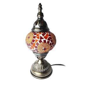 Lindo Abajur de mesa decorativo Turco, com suporte de metal bronzeado e cúpula circular artesanal em mosaico de vidros.