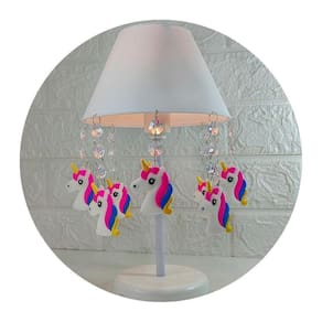 Esta luminária possui uma cúpula de polipropileno resistente na cor branca, que proporciona uma luz suave e aconchegante. Sua base e haste são feitas de acrílico branco, garantindo a estabilidade e durabilidade do abajur. Os pingentes de unicórnio, feitos de aplique emborrachado, adicionam um charme especial ao produto.